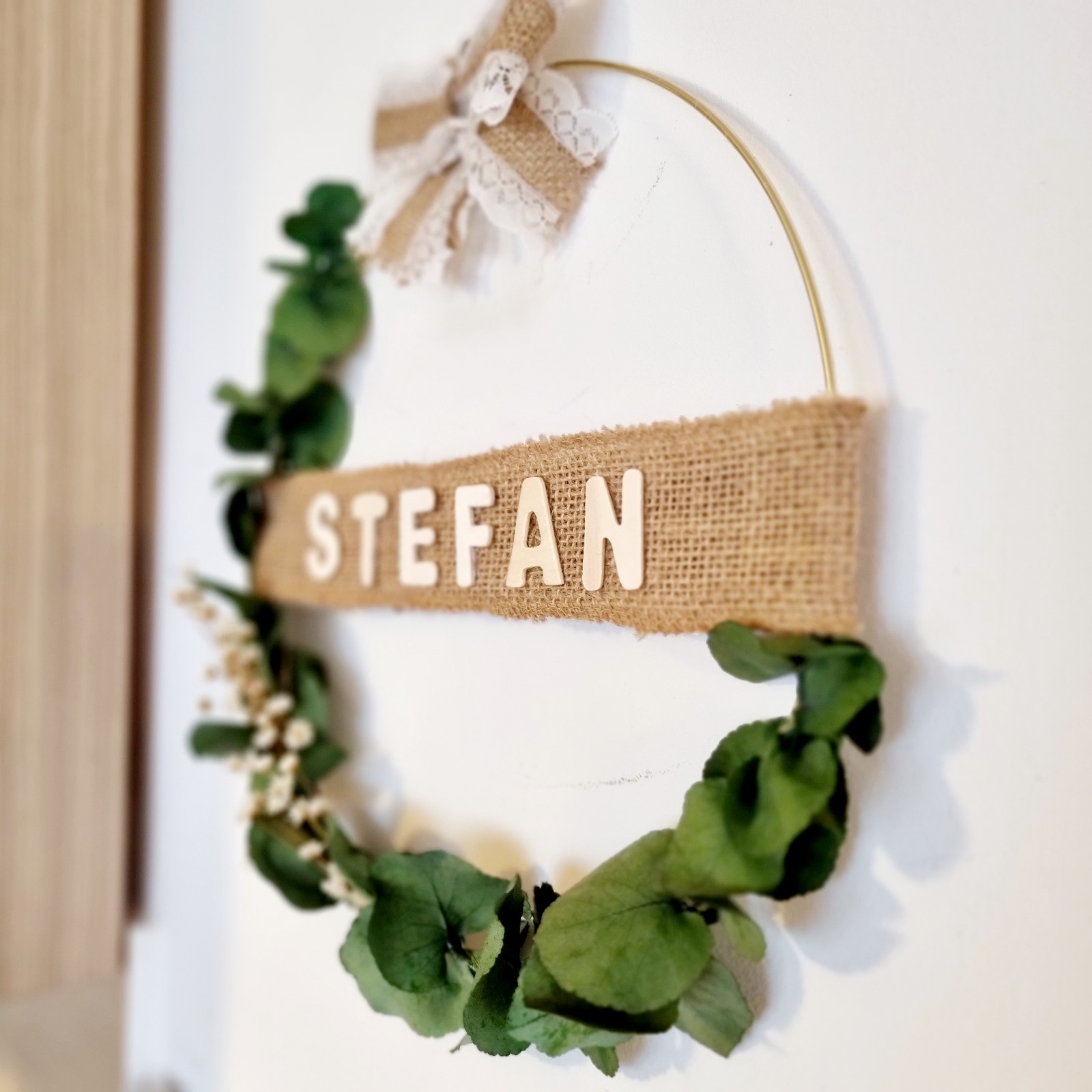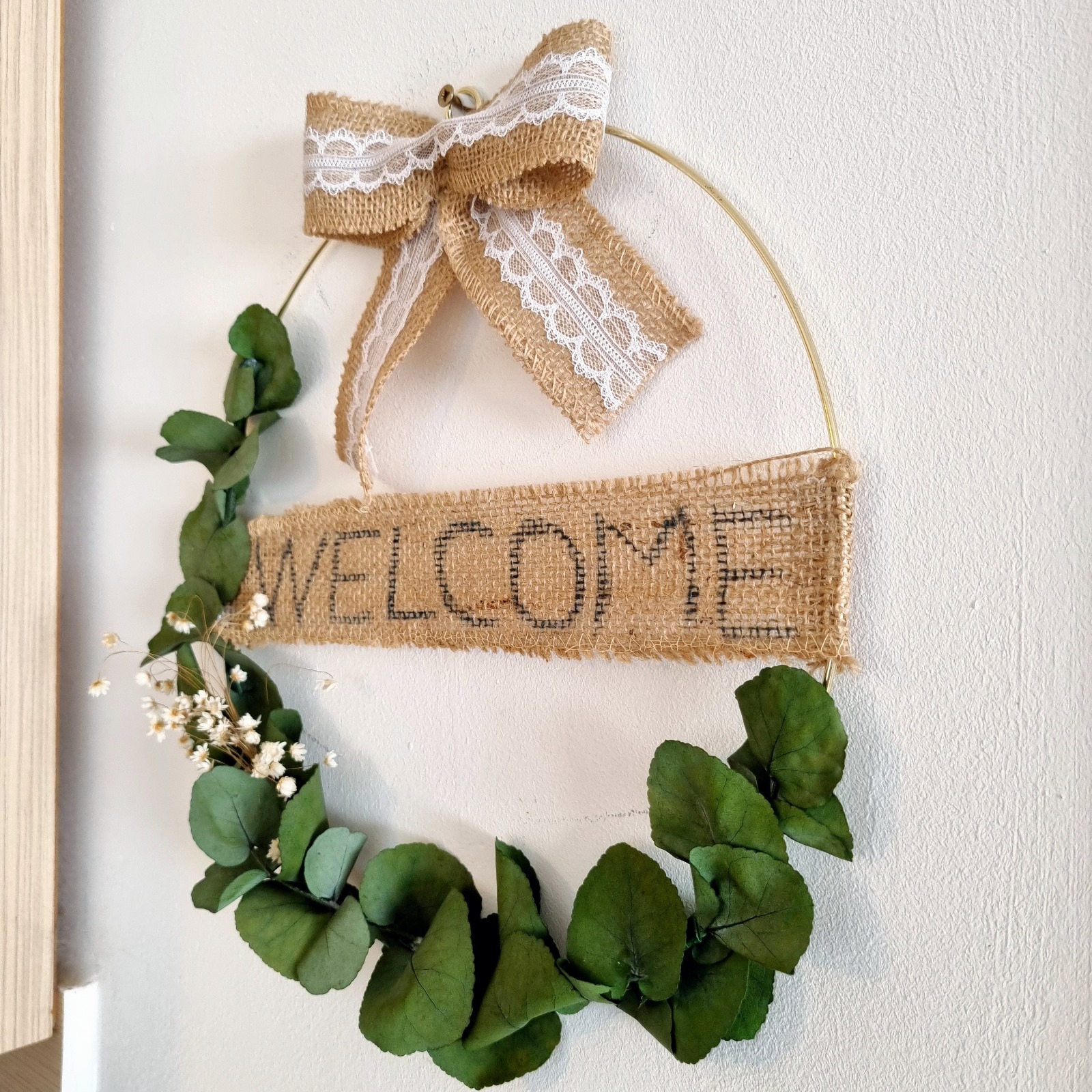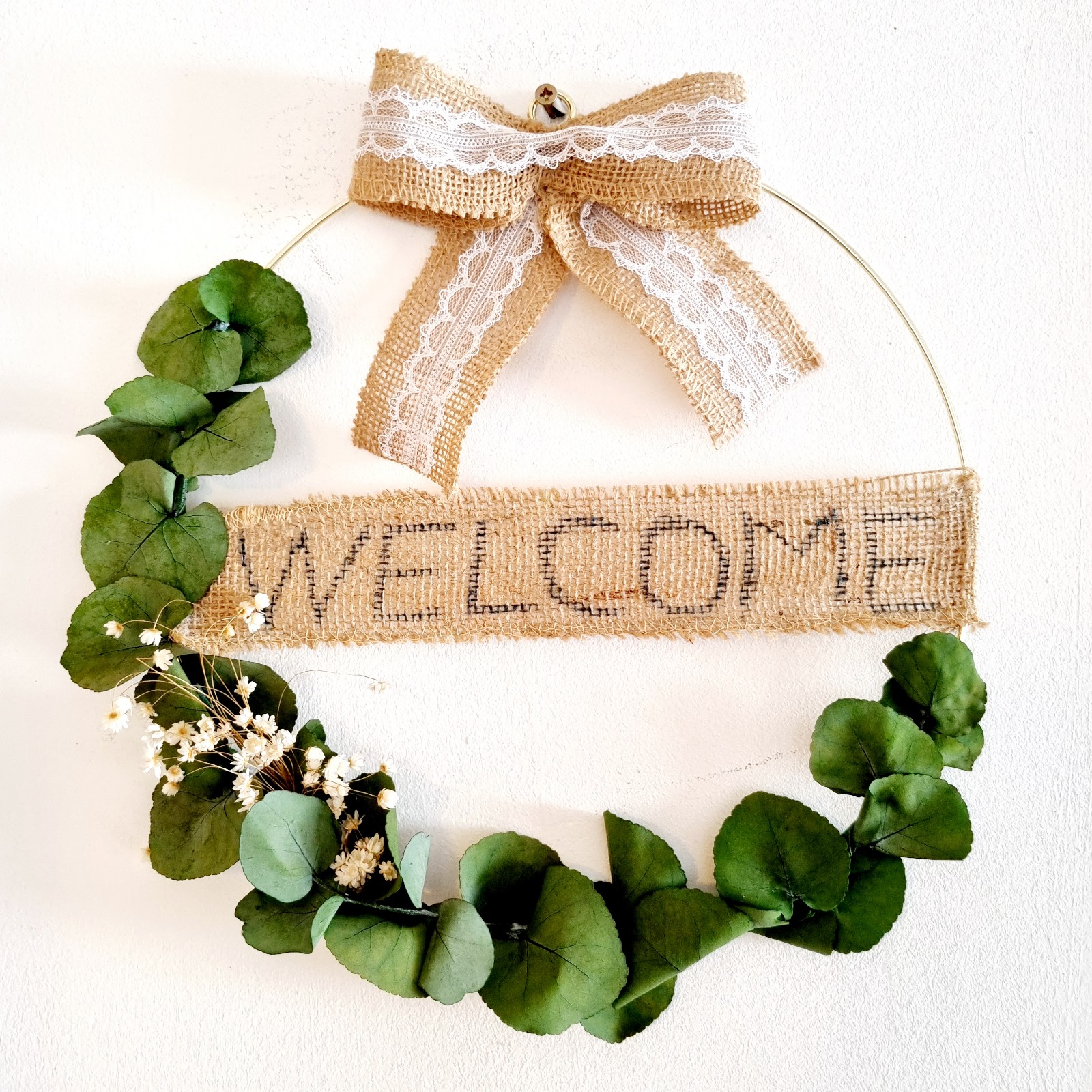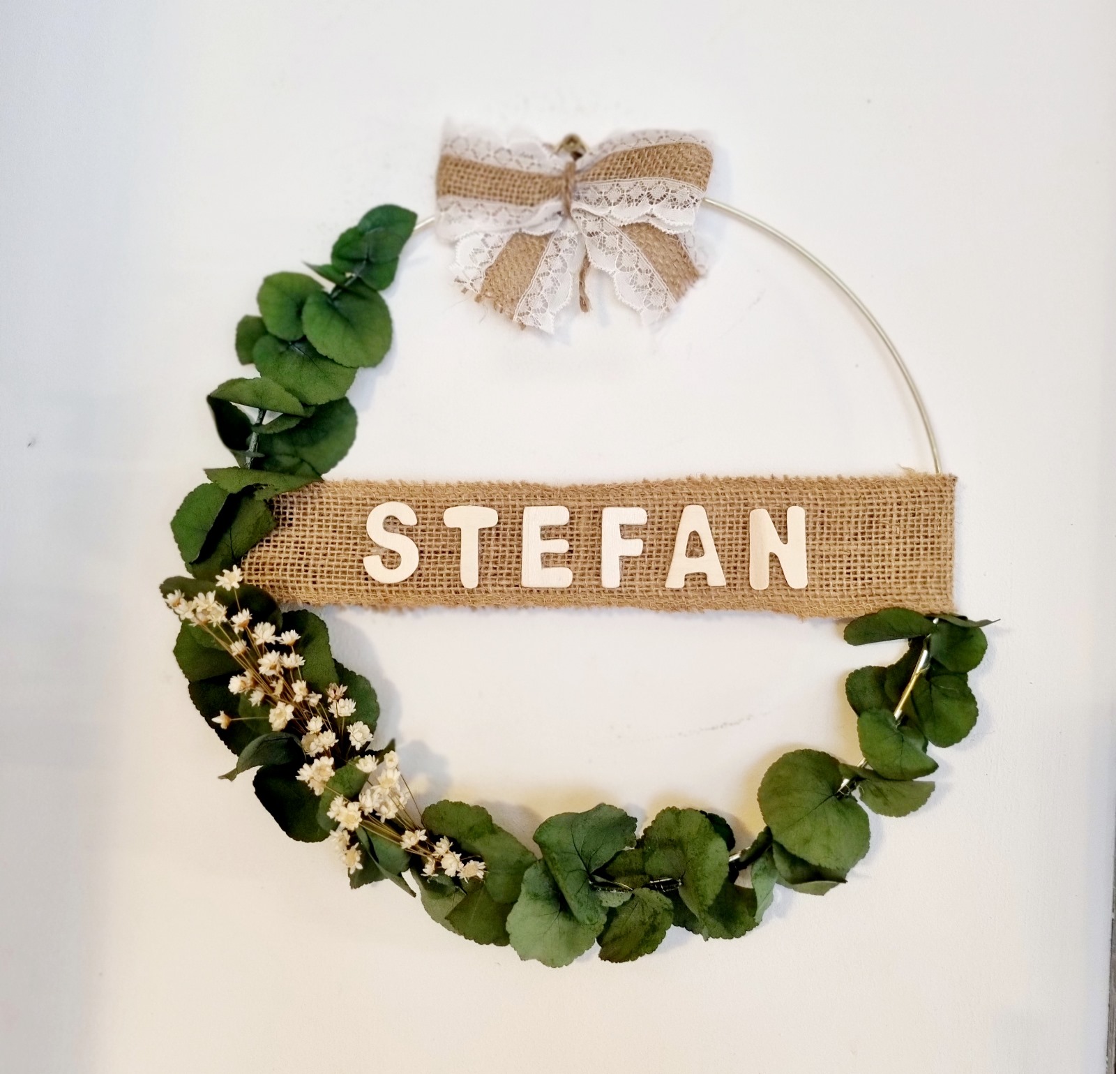Materiale: Eucalipt verde, flori albe